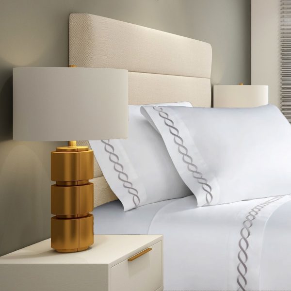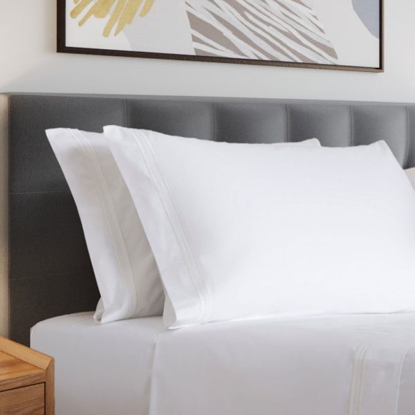 400 Thread Count White Cotton Sateen Hotel Stitch Sheet Set in 3 line Embroidery Border