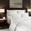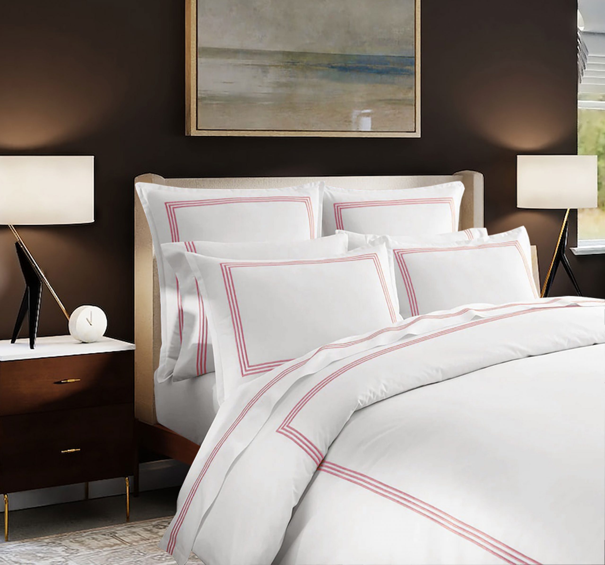 400 Thread Count White 100% Cotton Sateen 3 line embroidery Border Duvet Cover Set