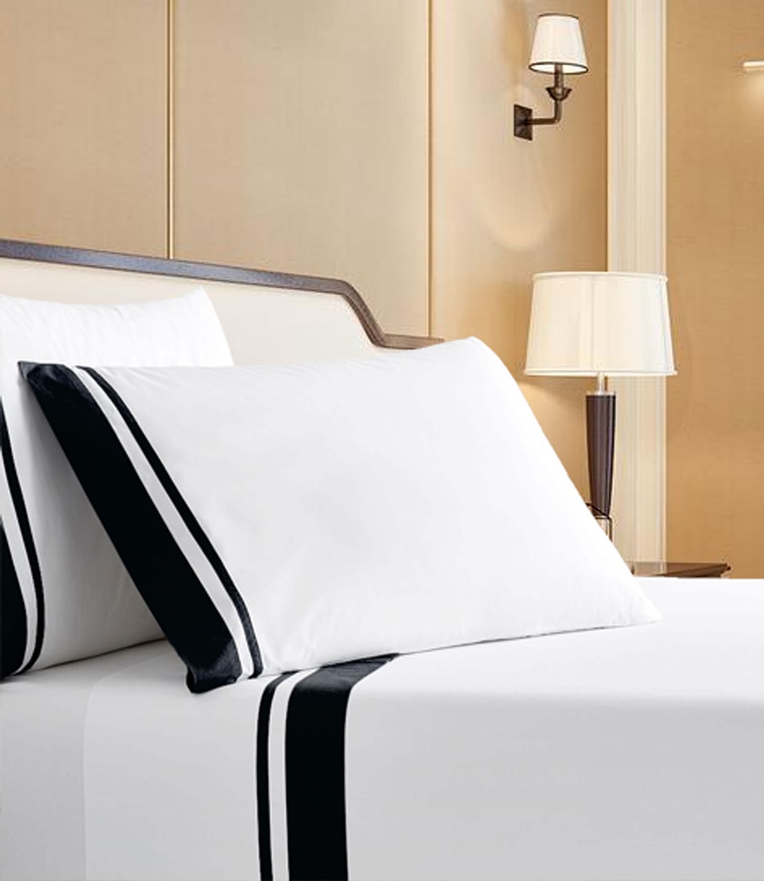 400 Thread Count White 100% Cotton Sateen Border Frame Sheet Set