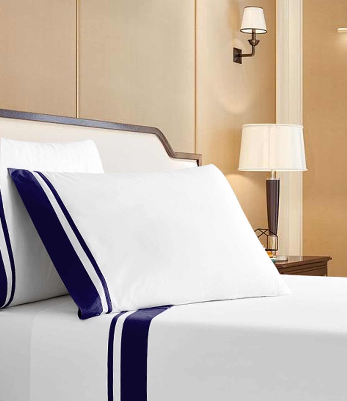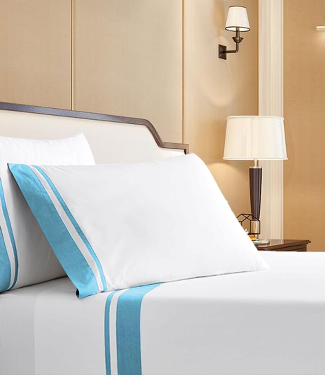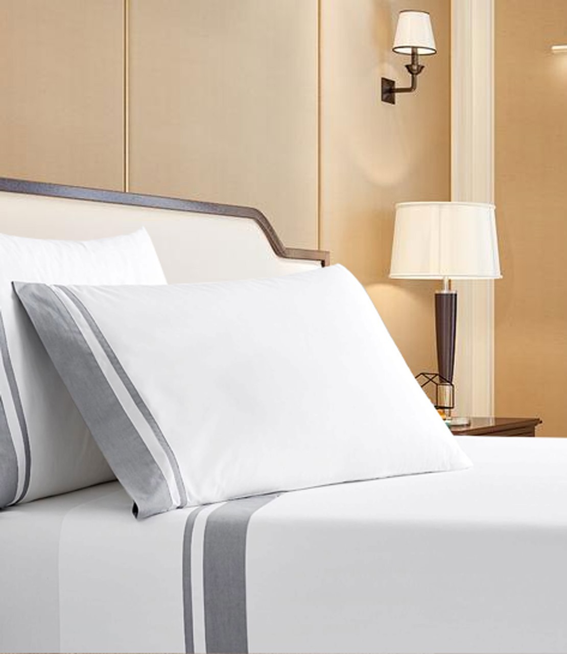 400 Thread Count White Cotton Sateen Hotel Stitch Sheet Set in 3 line Embroidery Border