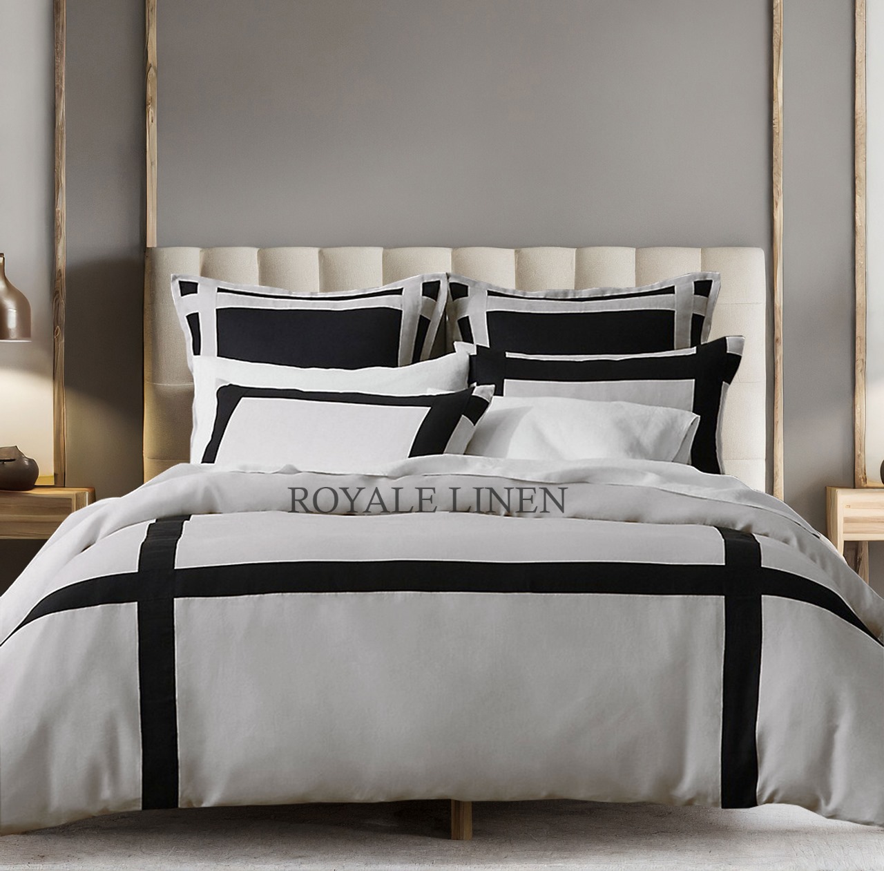 400 Thread Count white Cotton Sateen Hotel Stitch Border Frame duvet cover set
