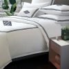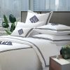 Personalized Monogram 400 Thread Count White 100% Cotton Sateen Hotel Stitch 3 line Embroidery Border Duvet Cover set