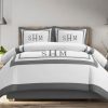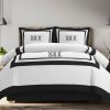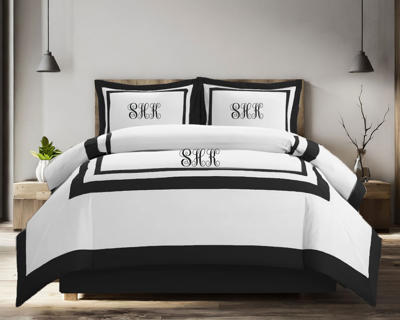 Personalized Monogram 400 Thread Count white Cotton Sateen Hotel Stitch Border Frame duvet cover set