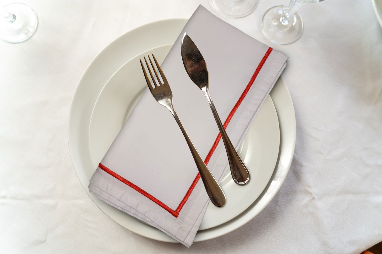 White 100% Cotton Sateen Single Embroidery Dinner Napkins